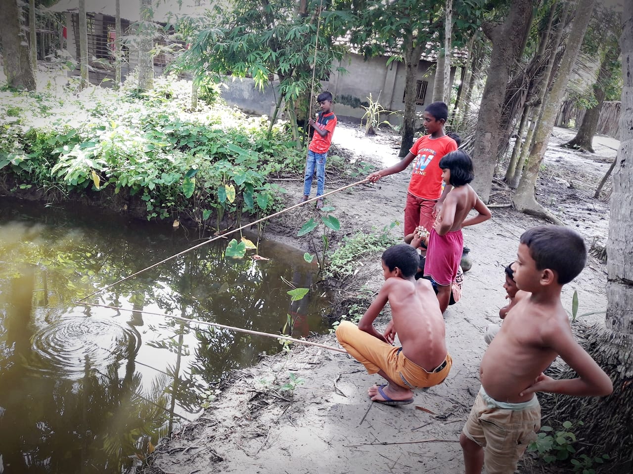 মনের আনন্দে প্রাকৃতিক দৃশ্য আঁকছে শিশুরা