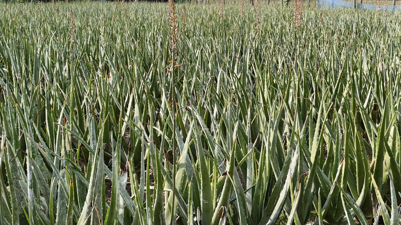 অ্যালোভেরার চারা। চারা লাগানোর তিন মাস পর থেকে পাতা সংগ্রহ শুরু হয়, যা টানা দুই বছর পর্যন্ত চলে। আলোভেরা চাষে প্রাকৃতিক জৈব সার ছাড়াও যথাযথ পরিমাণ ইউরিয়া-টিএসপি-এমওপি ব্যবহার করা হয়। পাতায় দাগ বা পচন ঠেকাতে ব্যবহৃত হয় চুন। আর পোকামাকড়ের ক্ষতি কমাতে এখন কৃষকরা ঝুঁকছেন ছত্রাকনাশক টাইকোডার্মা ও সেক্স ফেরোমোনের দিকে।